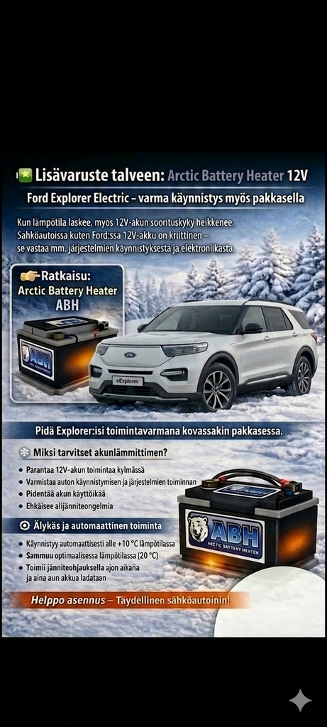 - automaattinen ajonaikainen akun lämmitys, jännite- ja termostaattiohjattu